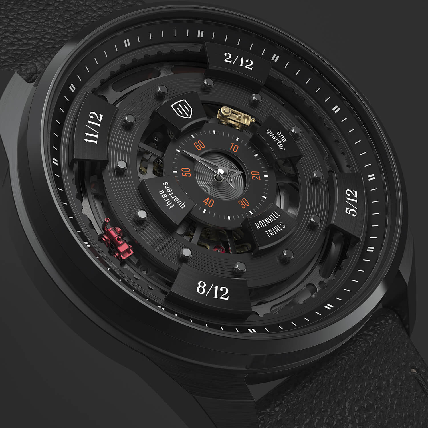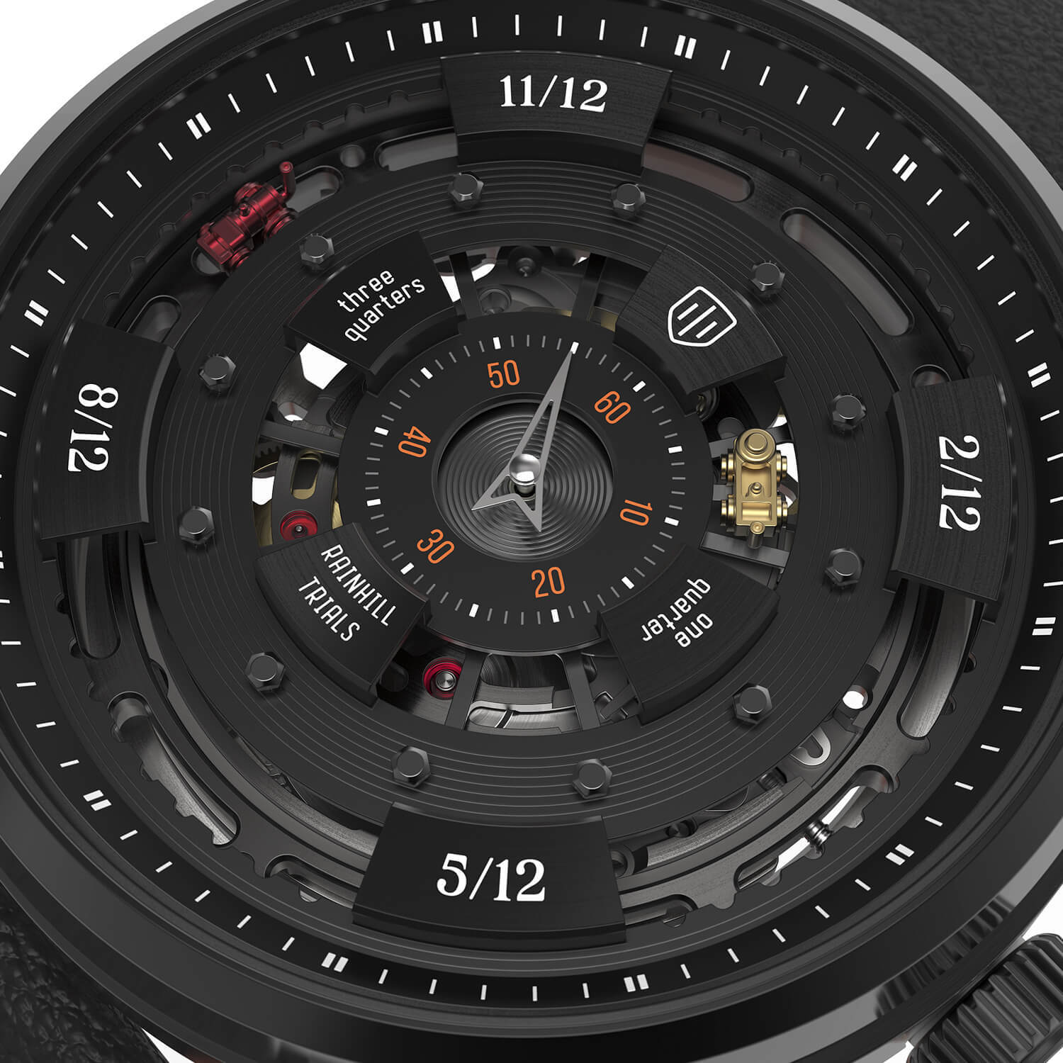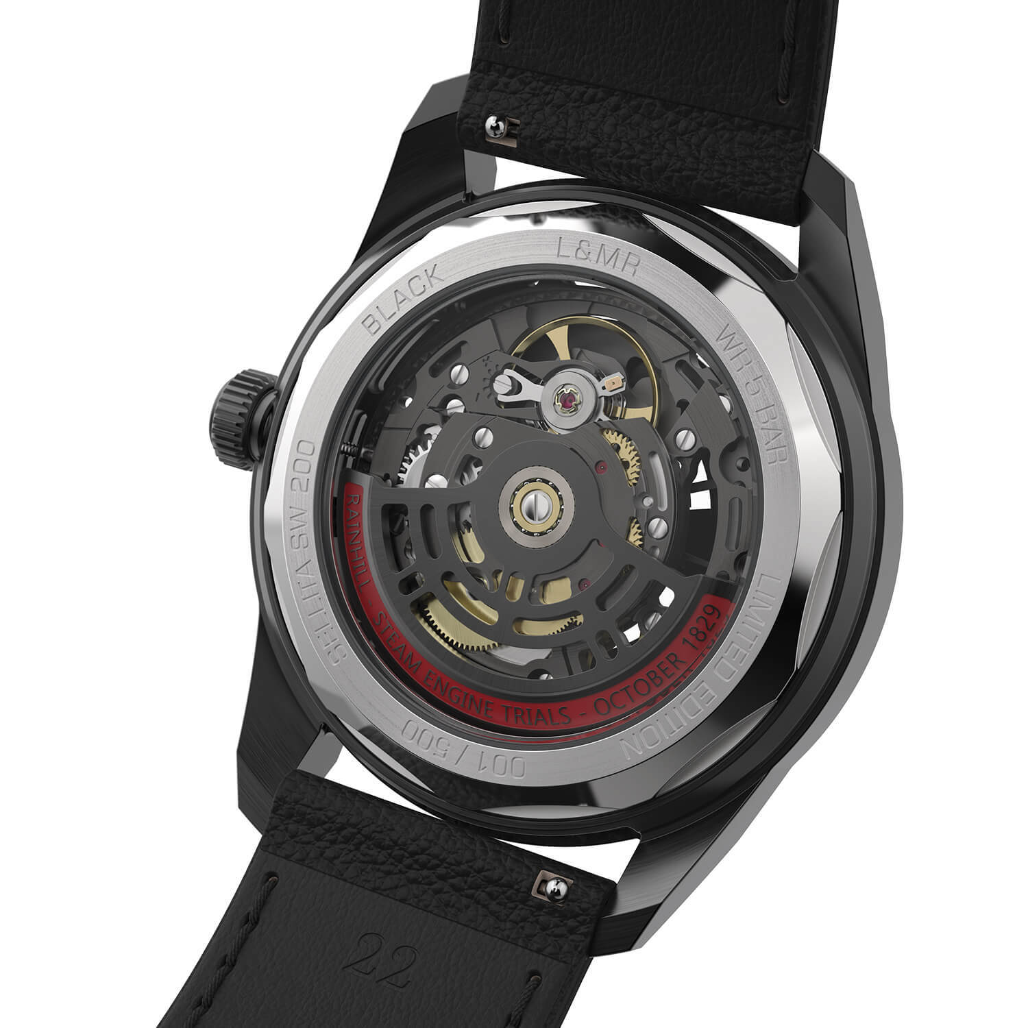 Отличительными особенностями коллекции L&MR Rainhill Trials являются трехмерные детализированные стрелки-локомотивы, выполненные из металла. Стилизованные паровозы приводятся в движение кастомизированным швейцарским механизмом Sellita SW200 с автоподзаводом, который можно наблюдать через сложный скелетонизированный циферблат