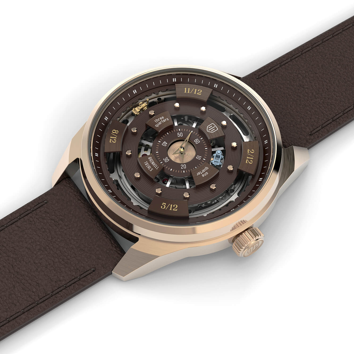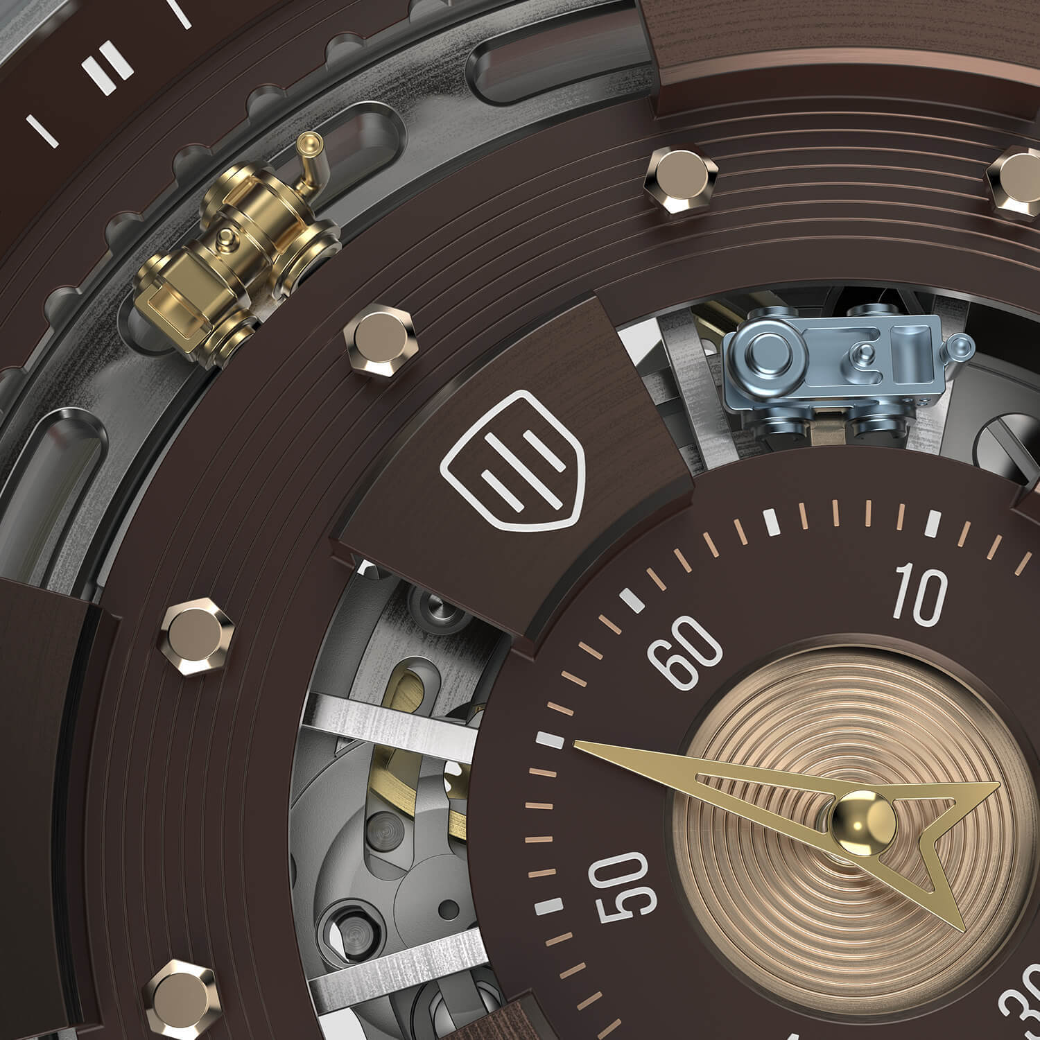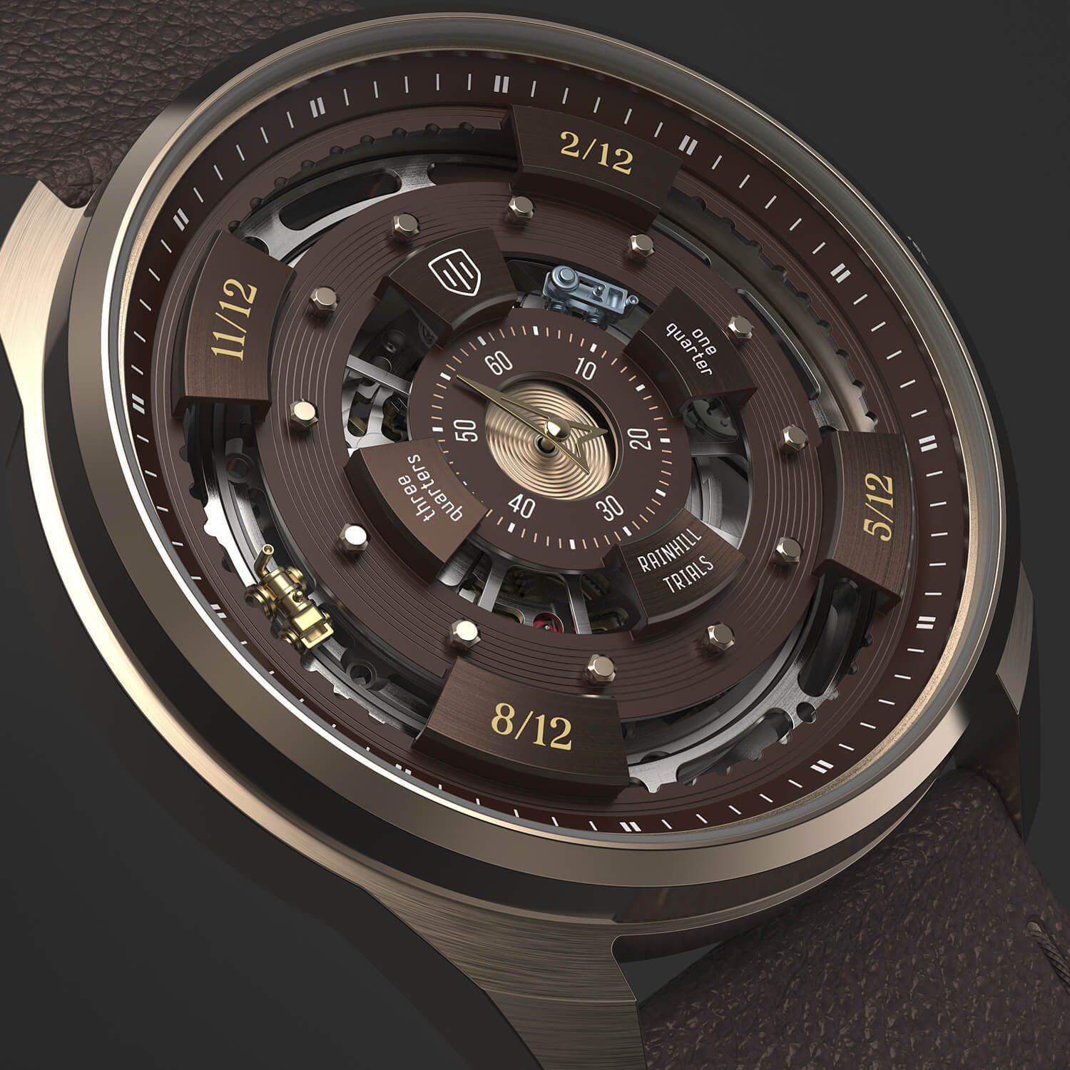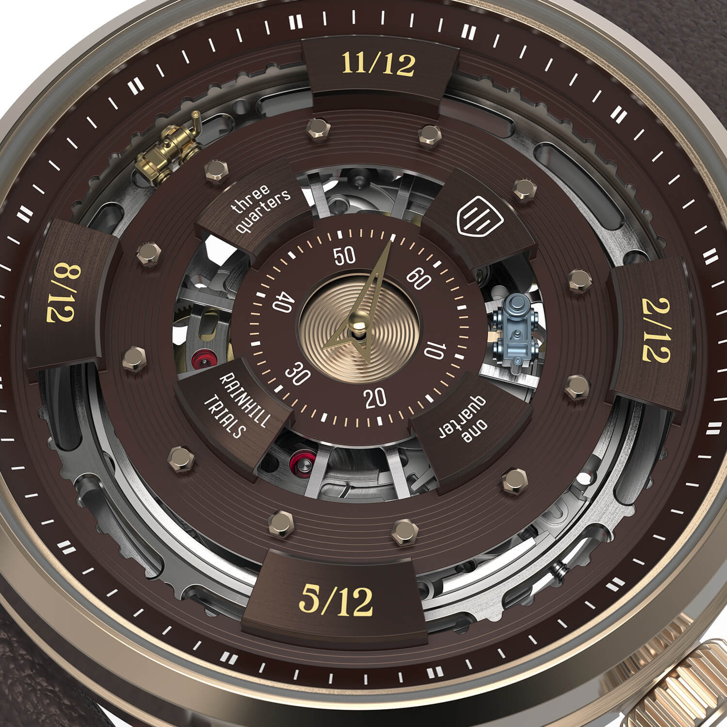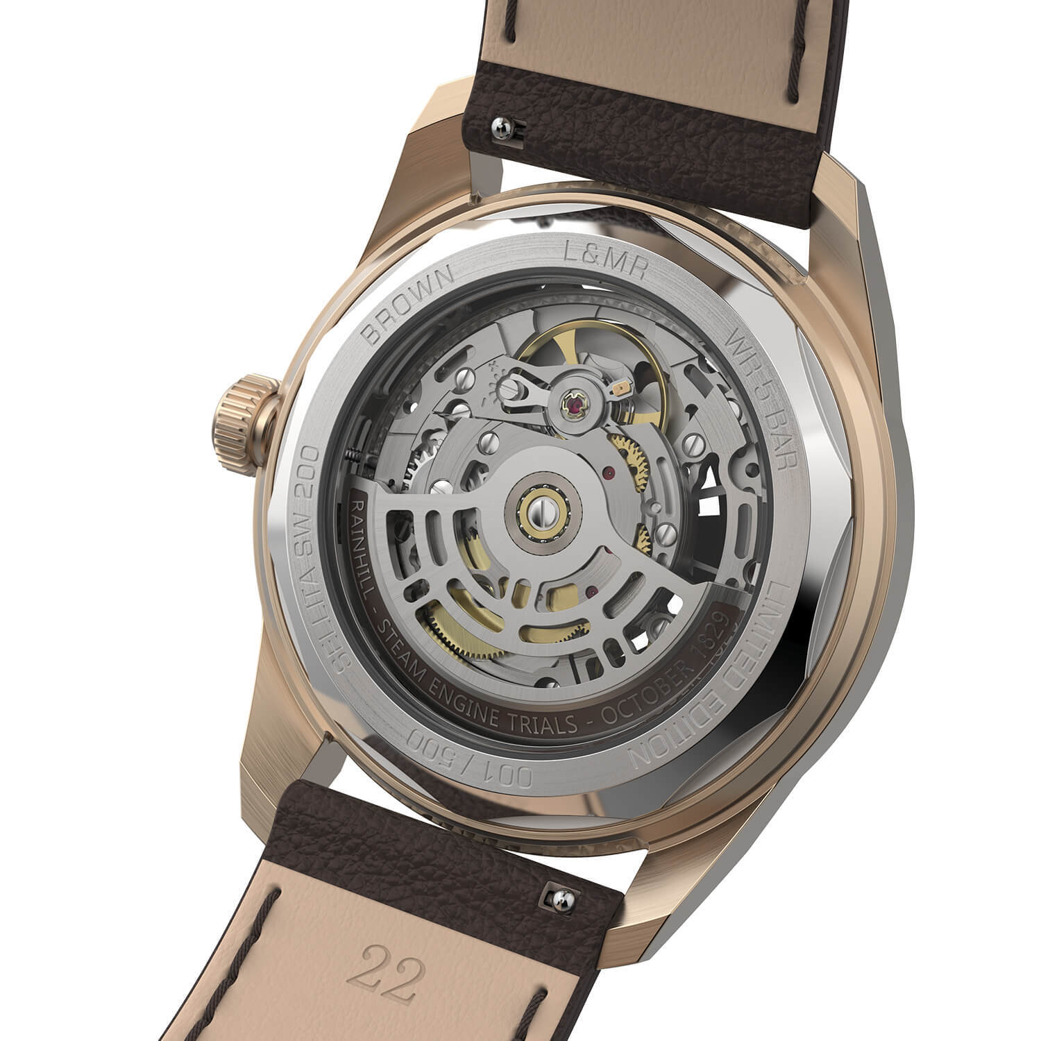 Отличительными особенностями коллекции L&MR Rainhill Trials являются трехмерные детализированные стрелки-локомотивы, выполненные из металла. Стилизованные паровозы приводятся в движение кастомизированным швейцарским механизмом Sellita SW200 с автоподзаводом, который можно наблюдать через сложный скелетонизированный циферблат