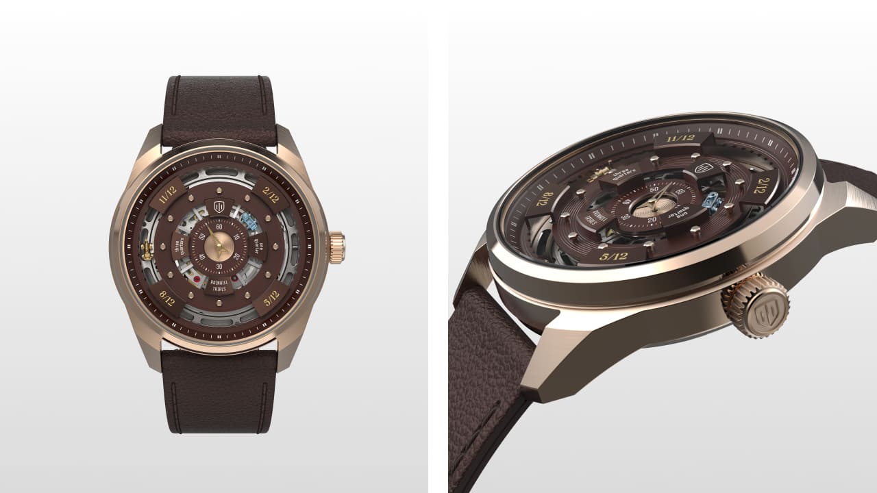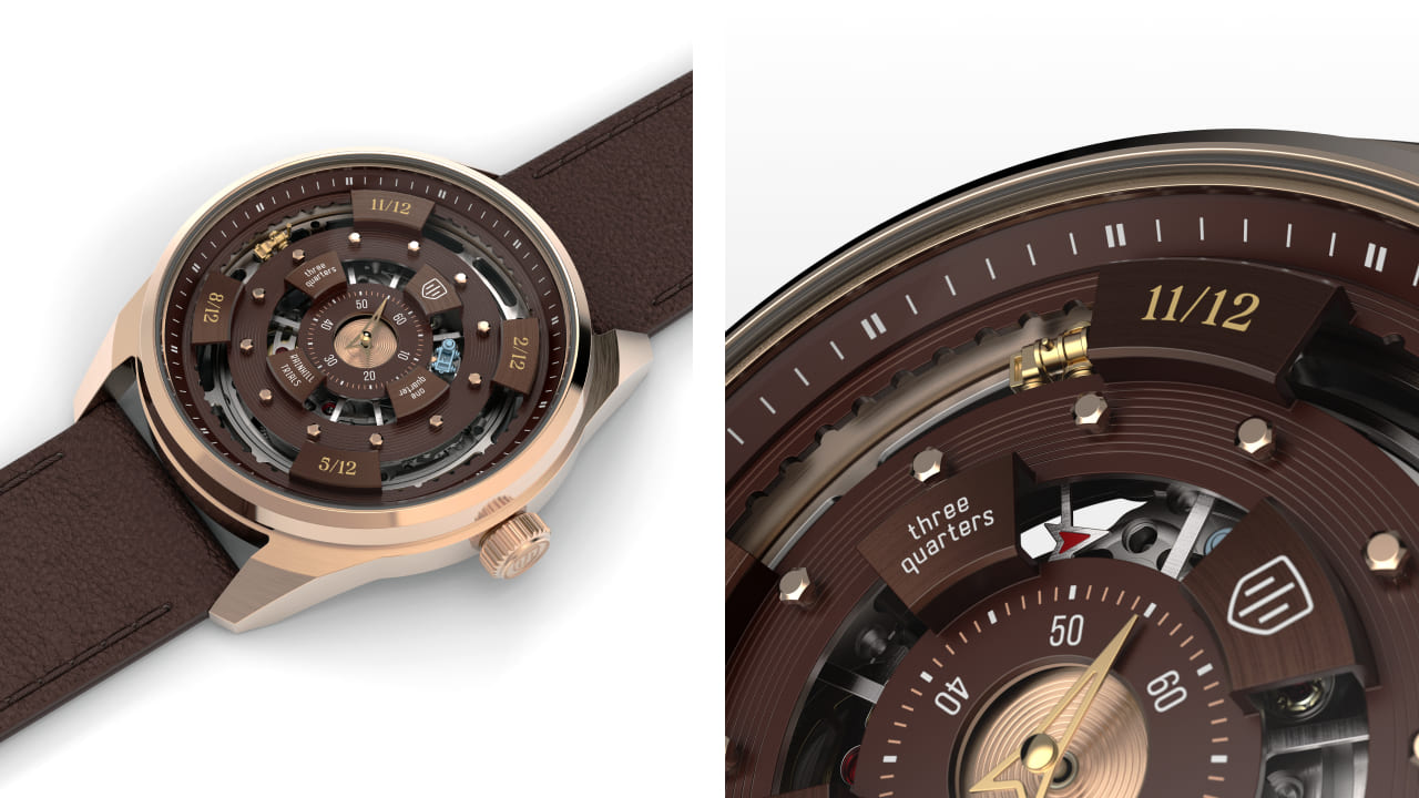 The hour locomotive draws inspiration from the legendary Rocket locomotive designed by Robert Stephenson, the winner of the Rainhill Trials. The minute locomotive’s design pays homage to the Novelty, engineered by John Ericsson and John Braithwaite, which captured public admiration and took second place in the competition.