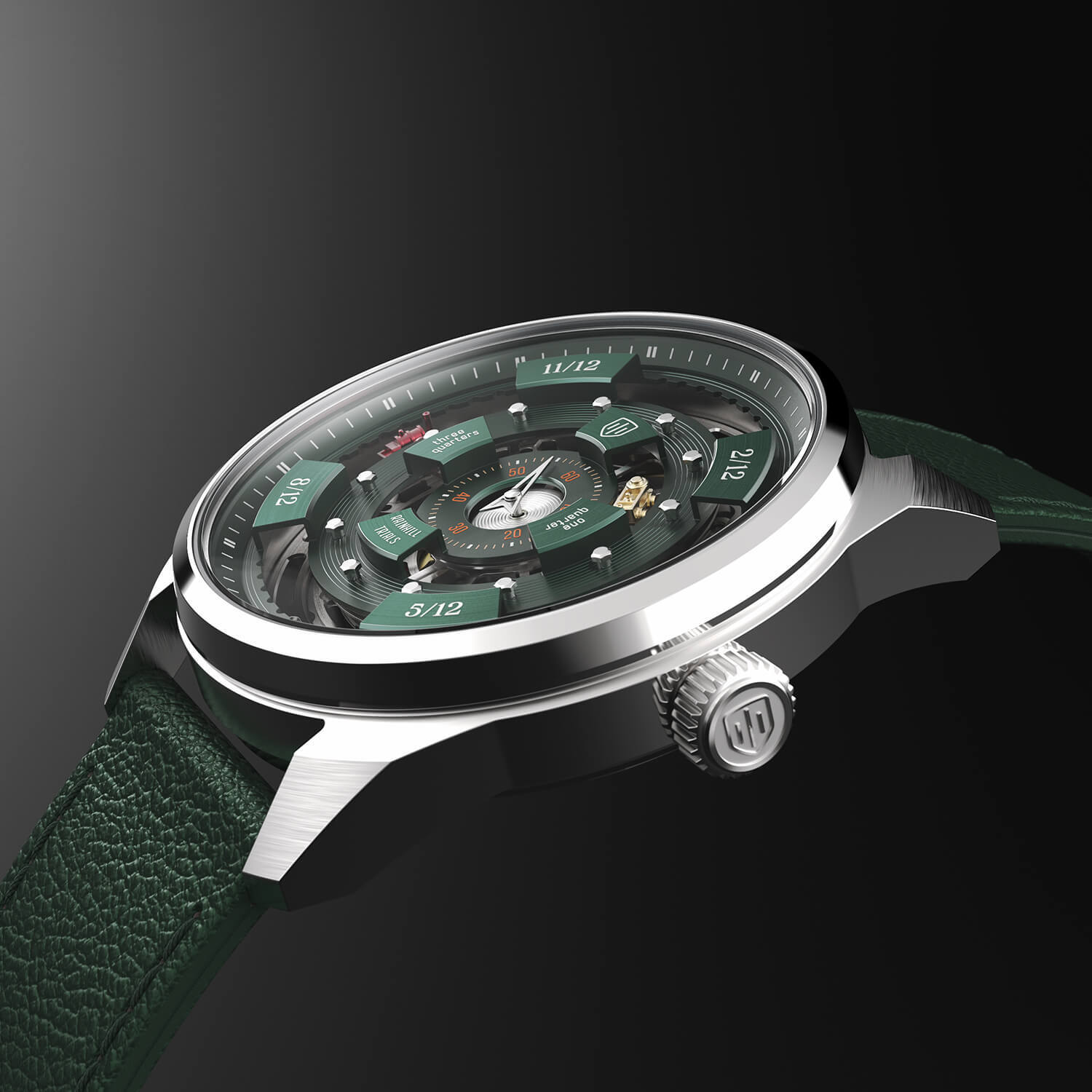 Модели получили совершенно новый корпус в индустриальном стиле, подчеркивающий концептуальный замысел коллекции. Форма в сочетании с полированными и сатинированными поверхностями корпуса, дополненная фактурной заводной головкой, отсылают к механическим элементам эпохи промышленной революции, вместе с тем поддерживая динамку циферблата.