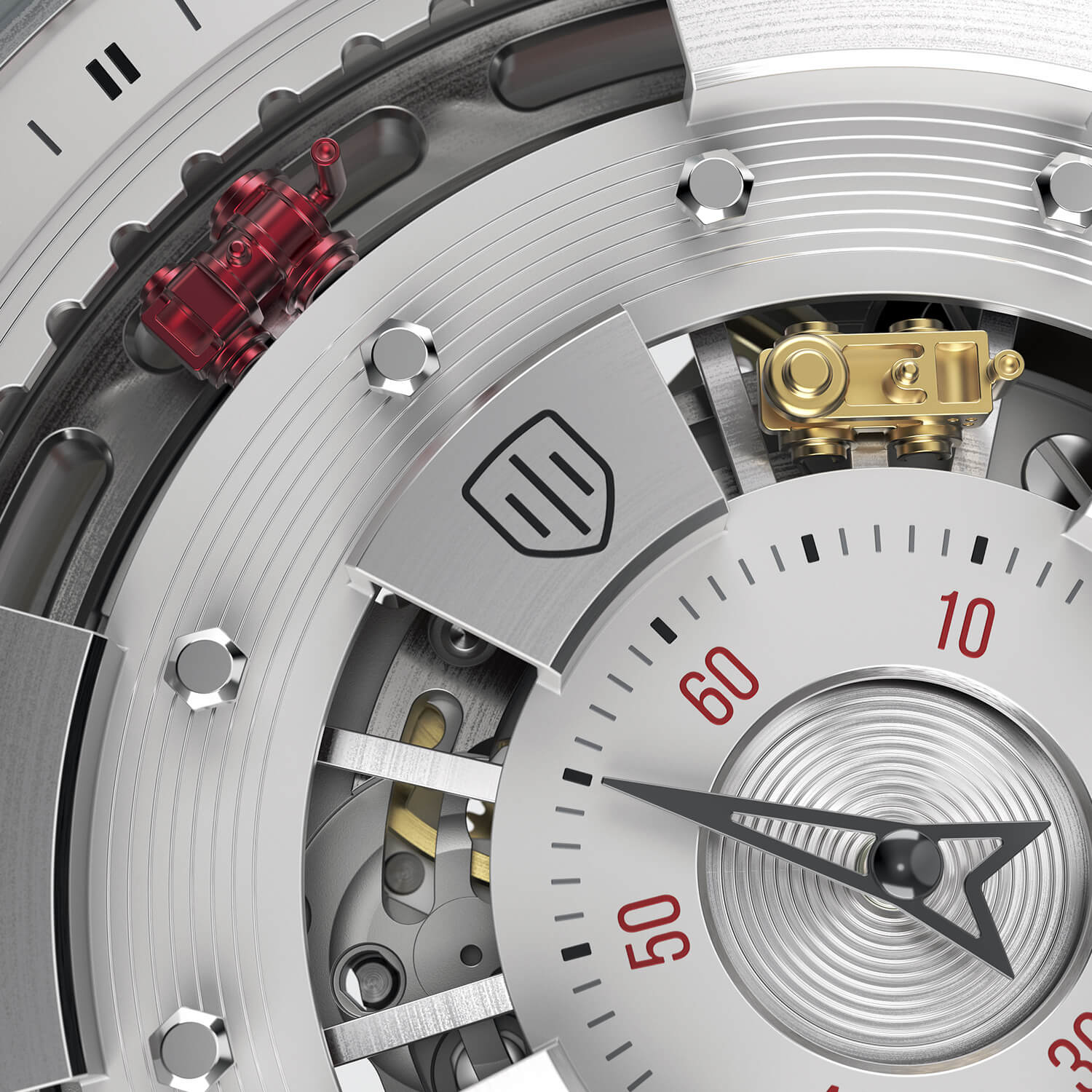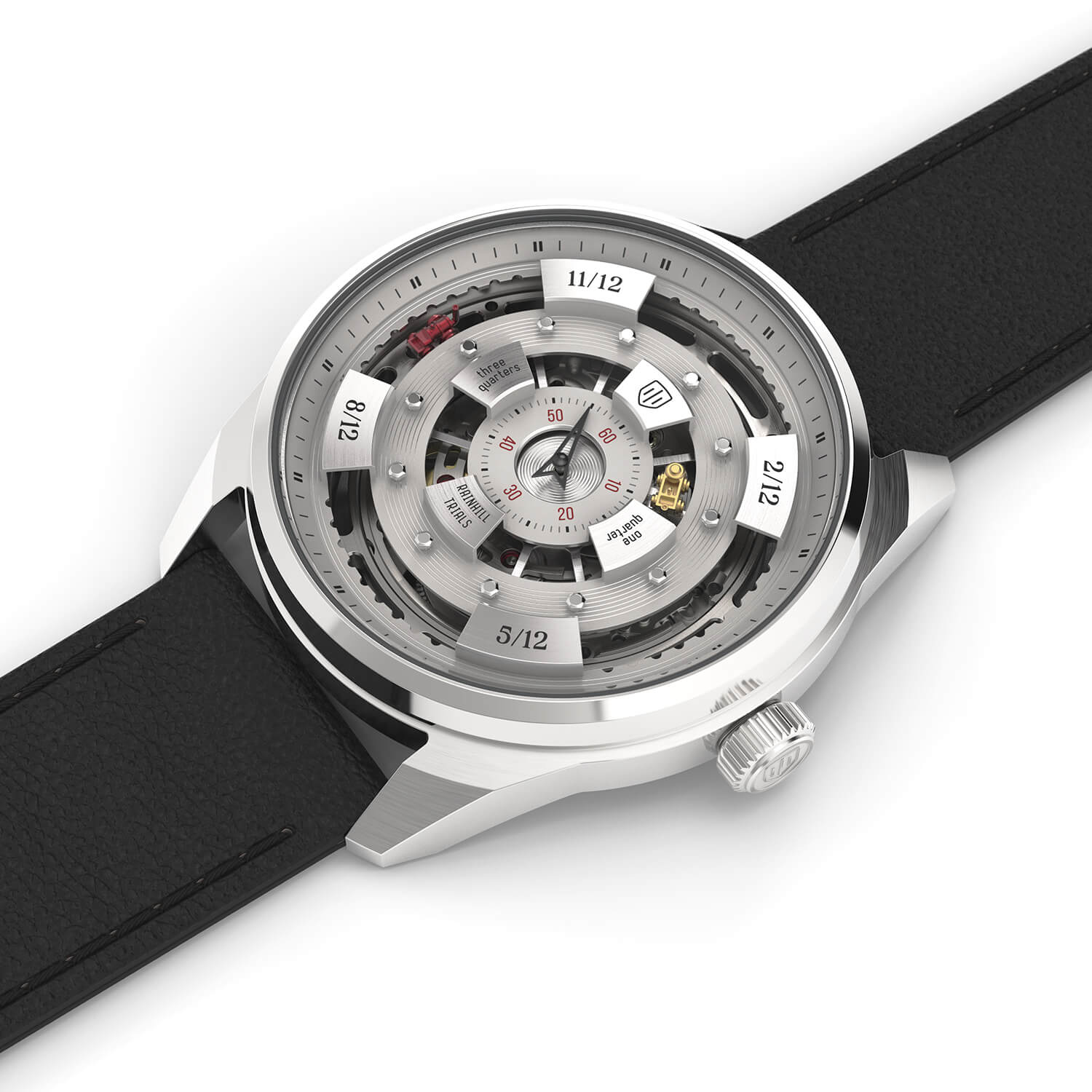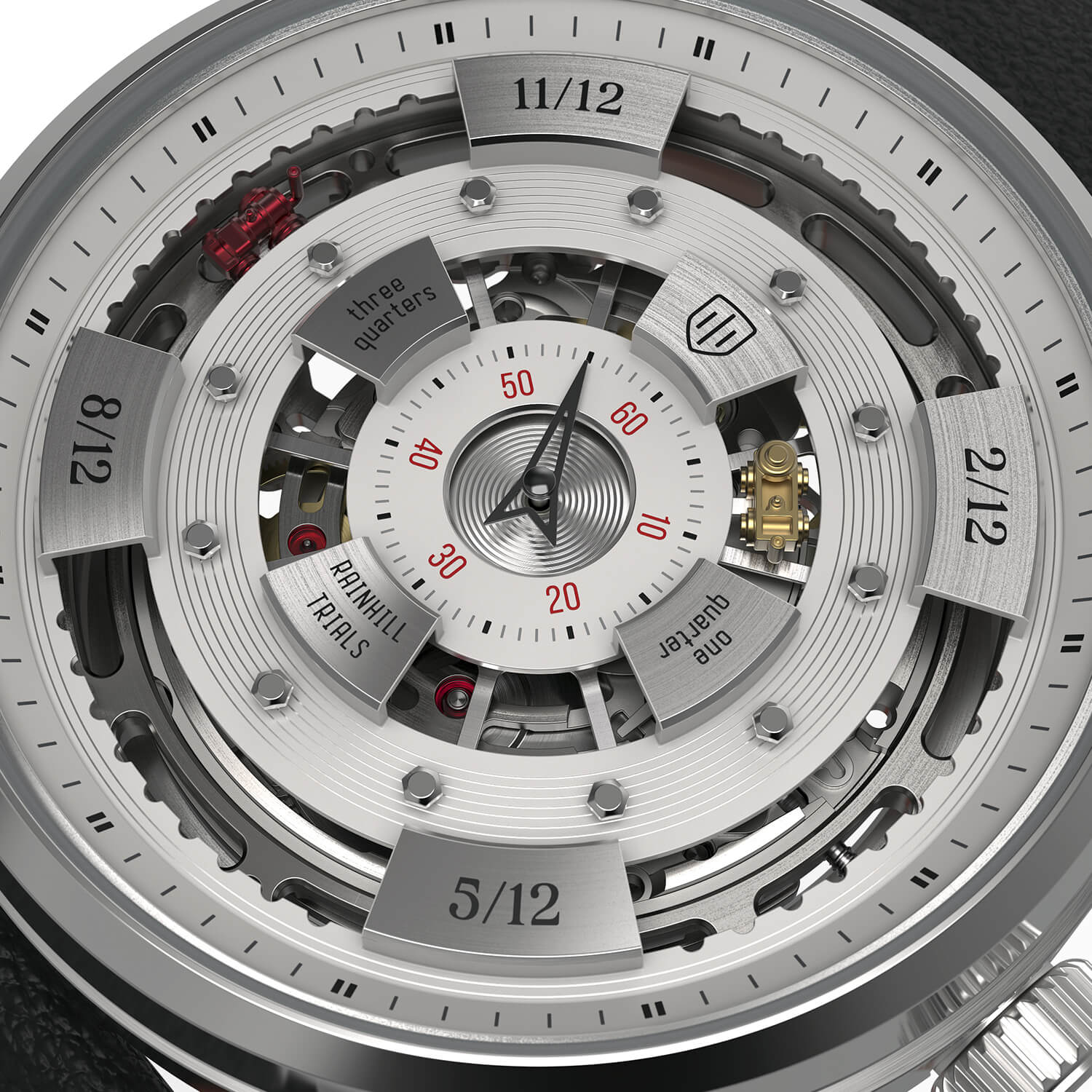 Отличительными особенностями коллекции L&MR Rainhill Trials являются трехмерные детализированные стрелки-локомотивы, выполненные из металла. Стилизованные паровозы приводятся в движение кастомизированным швейцарским механизмом Sellita SW200 с автоподзаводом, который можно наблюдать через сложный скелетонизированный циферблат