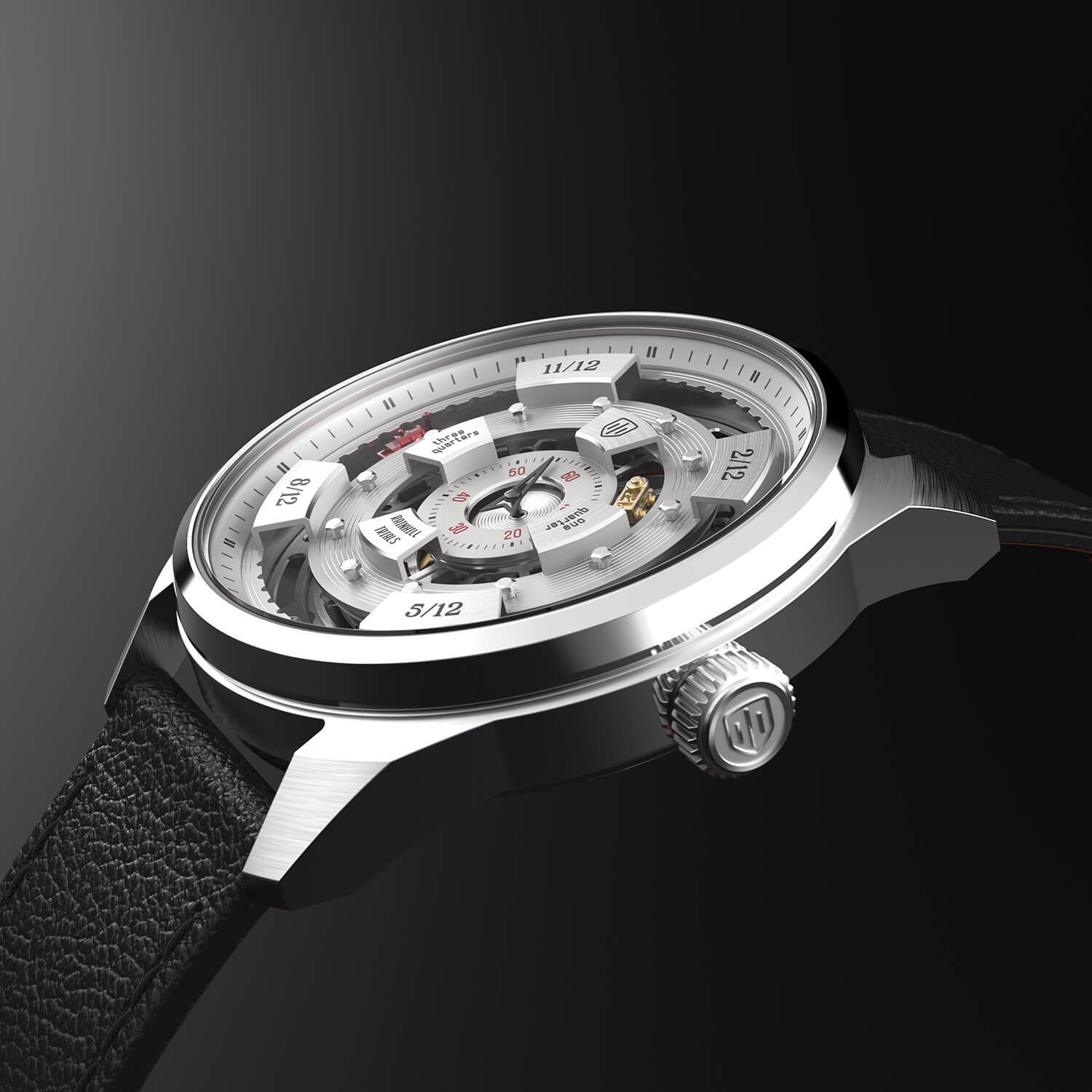 Модели получили совершенно новый корпус в индустриальном стиле, подчеркивающий концептуальный замысел коллекции. Форма в сочетании с полированными и сатинированными поверхностями корпуса, дополненная фактурной заводной головкой, отсылают к механическим элементам эпохи промышленной революции, вместе с тем поддерживая динамку циферблата.