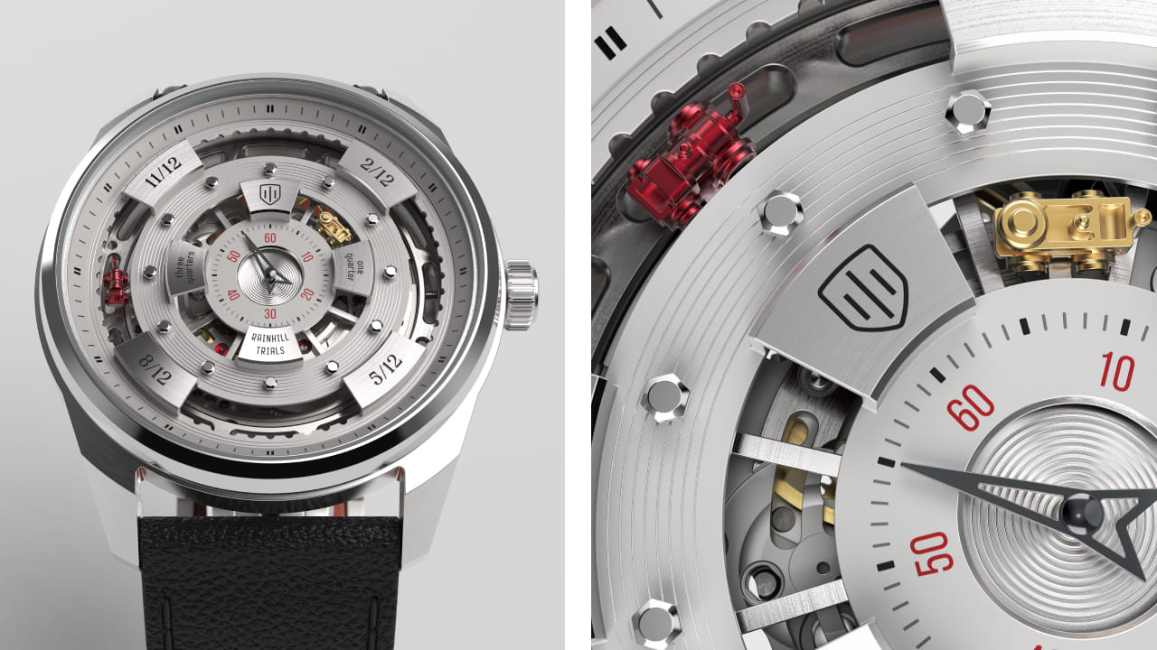 Адметнымі адзнакамі калекцыі L&MR Rainhill Trials зяўляюцца трохмерныя дэталізаваныя стрэлкі-лакаматывы, выкананыя з металу. Стылізаваныя паравозы прыводзяцца ў рух кастамізаваным швейцарскім механізмам Sellita SW200 з аўтападзаводам, які можна назіраць праз складаны шкілетанізаваны цыферблат.